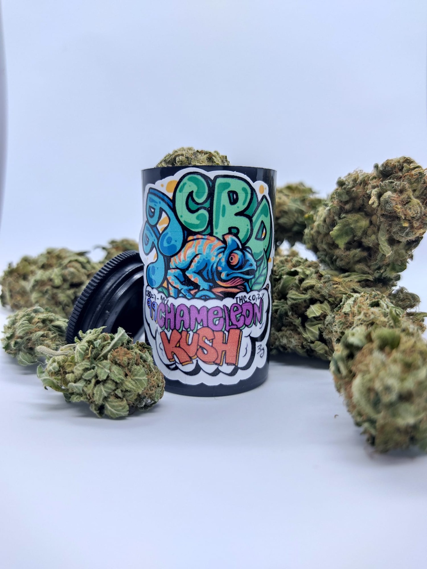 A nossa 99Chameleon Kush, uma strain dedicada e com notas exóticas e extremamente cheirosa, conta com uma taxa de 7 a 11% de CBD.